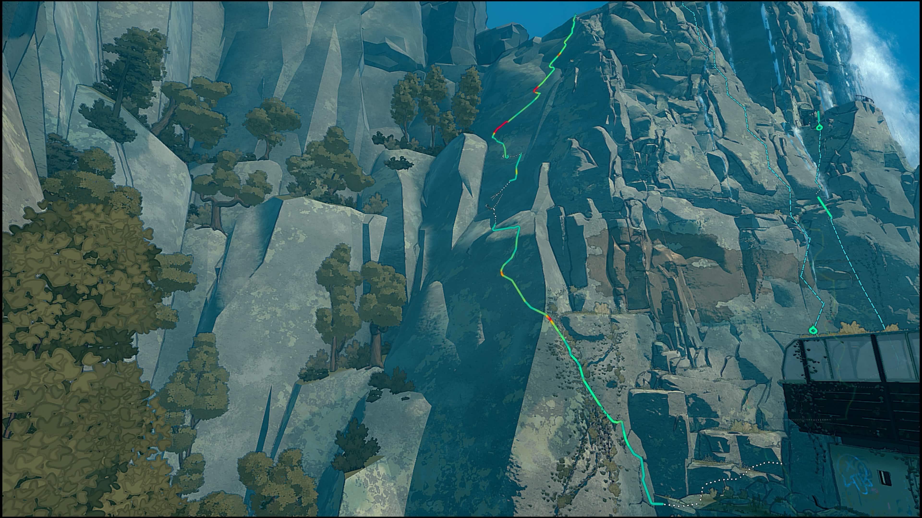 This route climbs the massive slab on the far west side of the mountain. To get to the main slab, begin beyond the cableway station at a vertical crack beneath some vines. Climb up to the arete, then traverse left onto the slab covered in leaves. Follow this up and over the edge onto the main slab. Once on the slab, do your best to navigate the wall's bumps and dishes to reach the top. All holds are off route except for the topout.