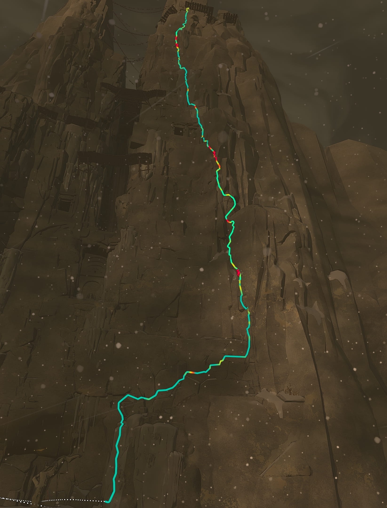 Avoid climbing onto any of the large ledges and breaking up the route.
