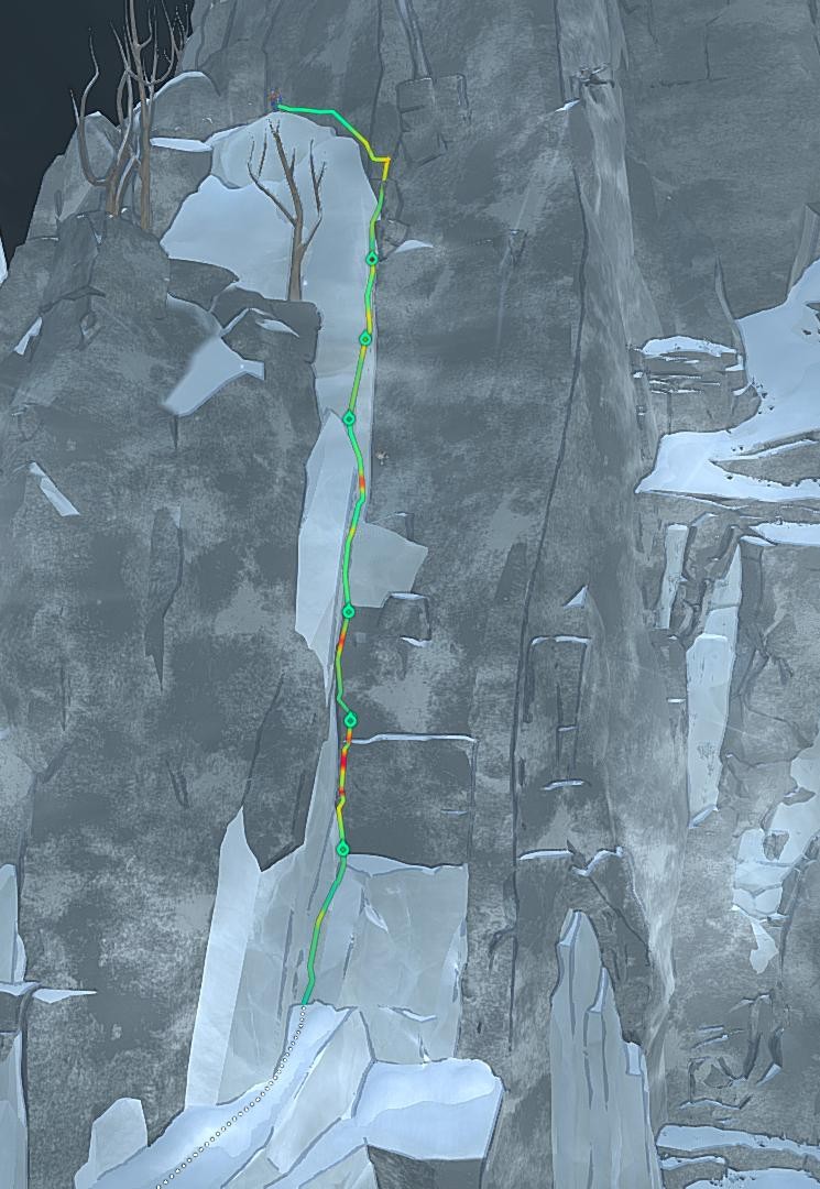 The route is located on the left side of the Sea of Seracs. To reach it, you must climb the small ridge. The route consists mostly of ice climbing, but there are also sections where you can grip the rock. In these parts, chalk is often helpful. On the right side, there are several ledges where you can stand up, but you can also continue without standing. The route ends at the very end of the ice field.